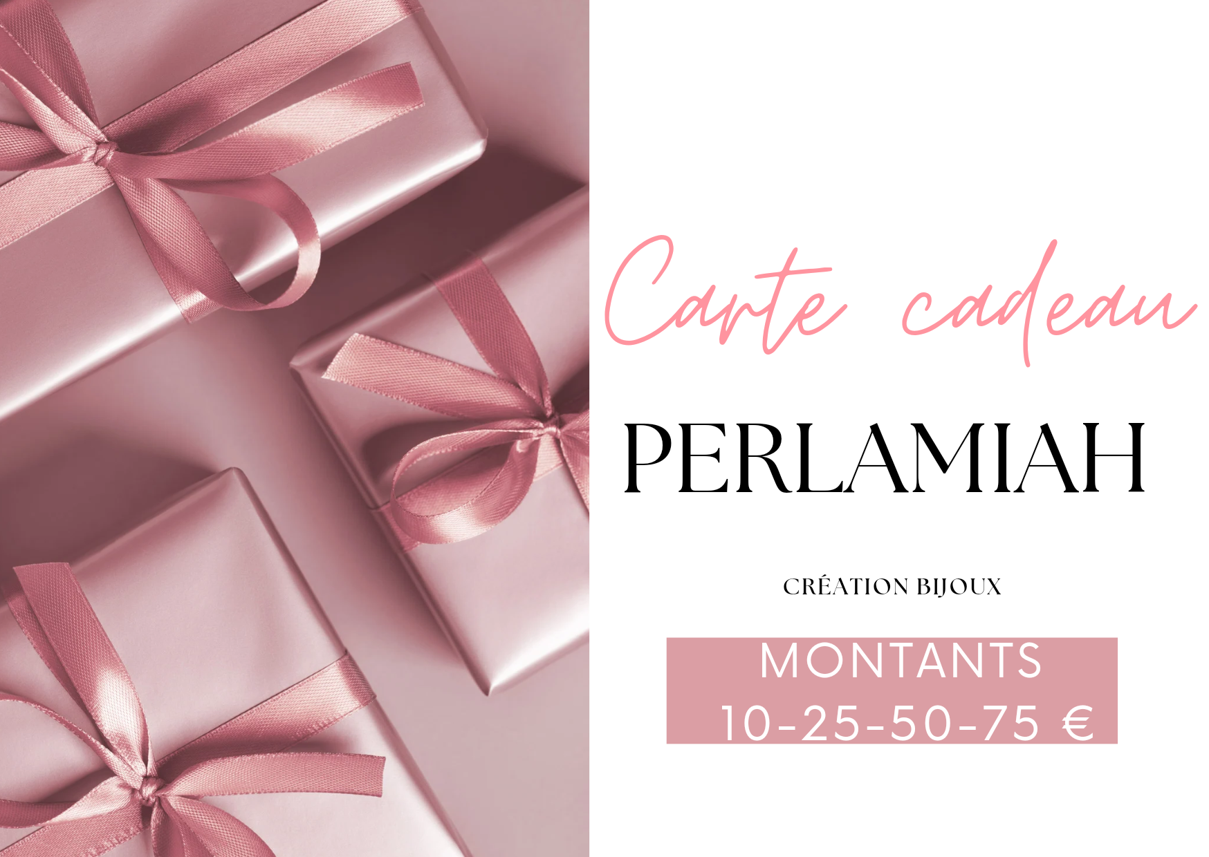 🎁 Découvrez le cadeau parfait pour les amoureux de bijoux faits main avec notre carte cadeau exclusive. Offrez-leur la liberté de choisir parmi notre sélection exquise de pièces artisanales uniques. Une expérience de shopping inoubliable les attend chez PERLAMIAH🎁